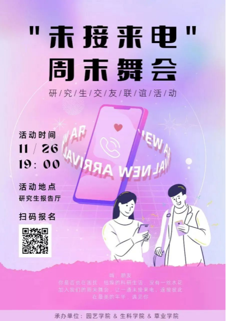 为了丰富同学们的课余生活,给同学们展现自我个性和风采的舞台,提高校园文化氛围,我们即将迎来非同寻常的夜晚,“未接来电”周末舞会,浪漫开启。