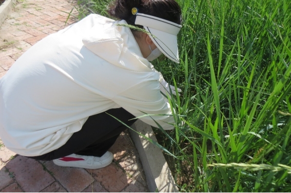 实践团利用上午所识草类知识,在下午进行了田间除草活动。在张老师的指导下,实践团完成了羊草试验小区及石竹试验小区的除杂草活动,真正做到了“做中学”。