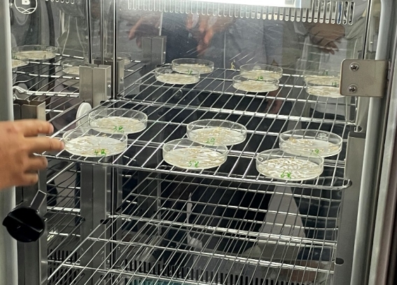 片刻休息之后,实践团在张老师的带领下进入了实验室进行羊草的种子发芽实验。先是观察了上一批的实验结果,然后在张老师的指导下,实践团对培养皿进行了消毒,播种羊草种子,加入培养液,放入培养箱等一系列操作,使实践团对羊草有了更深的认识,也对接下来的实践多了一分期待。