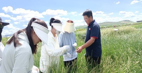 7月3日上午,张海宁老师带着实践团在蒙草生态研究院的植物种质资源圃中进行识草。种质资源圃中共有80余种草类植物,在张老师的带领下实践团认识记忆了二十余种草类植物,收获颇丰。包括羊草、芍药、赖草、蓝亚麻、燕麦、紫花苜蓿、石竹等。