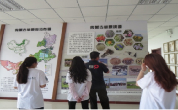 社会实践团在蒙草研究员张海宁老师的带领下参观蒙草公司草原生态系统研究院。老师从草地分布、草地类型等方面为我们讲解了中国草原和内蒙古草原的区别,还带领我们参观了草原植物标本。之后为我们讲解了蒙草公司的发展历程、草原生态研究院的研究内容、研究团队、草原修复治理、草畜平衡动态监测及获得的成果与知识产权等内容。社会实践团成员在研究院参观过程中接触到不同于书本上的知识,真正的走出了从课堂到实践生产的第一步。