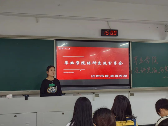 会议开始,学院团委组织部部长唐梦圆首先上台阐明了这次会议的主要目的——让学生们对今后的大学生活有大致的规划。随后,七位已经通过推免被录取为2024级研究生的大四学姐依次上台发言,分别从几个方面详细地介绍了保研的各个事项。