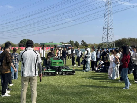 随后,杨老师带领大家走进研究院的试验基地,他如数家珍般地向大家一一介绍了草坪工程建设与养护所用的各类机械设备,着重强调,现代草坪工程与技术,是一个新理论持续形成、新技术不断涌现、新应用场景持续创新的领域,随着国家建设与时代进步,有着非常广阔的发展前景。