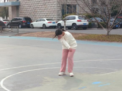 每队派5名队员,每名队员站在起点线指定地点,原地大象鼻子转6圈,于10秒内在起点线后贴地将篮球推出,击倒指定位置的水瓶。最终以5名队员击倒水瓶总数进行排名积分。