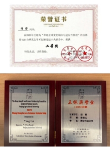 2020级在读博士生。曾获“瑞华杯”南京农业大学最具影响力研究生、王栋奖学金、中国草学会年会博士研究生学术汇报二等奖、吉林省长白山“草地全球变化响应与适应性管理”研究生学术论坛汇报二等奖、博士生二等奖学金、金善宝奖学金、“青春绽放,与你同行”羽毛球女子单打季军、研究生文明宿舍。
