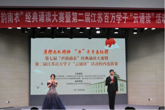 5月9日,“赓续南农精神,点亮青春征程”南京农业大学第七届“声韵南农”经典诵读大赛决赛暨第二届江苏百万学子“云诵读”活动校内选拔赛"在大学生活动中心正式拉开帷幕。