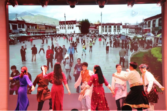 首先登场的节目是由藏族同学们带来的舞蹈——《那曲锅庄》。耀眼的舞台光照射在同学们的身上。一舞结束,藏族同学们为老师们献上洁白的哈达,代表着最真诚的感情,寄托着最美好的祝愿。