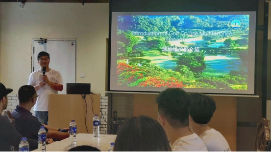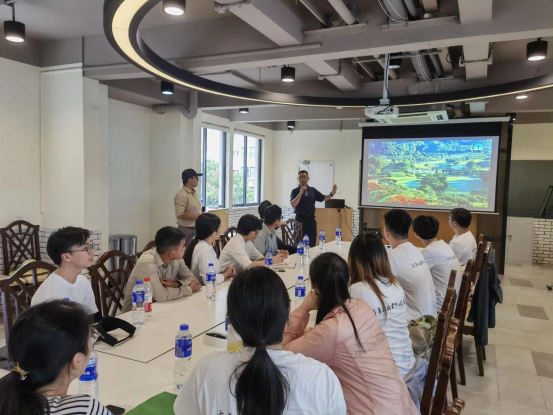 下午,实践团一行来到了深圳西丽高尔夫乡村俱乐部。西丽高尔夫乡村俱乐部坐落于深圳市南山区,球会由亚洲区著名的香格里拉酒店集团管理,是一座拥有36洞的标准高尔夫球场。在草坪总监赵昊的精心组织下,实践团队成员与球场草坪部进行了面对面深入交流,从不同角度了解了高尔夫草坪行业的发展。交流结束后,在球场工作人员的带领下实地参观了各类草坪养护设备和高尔夫球场,并学习了一些高尔夫礼仪基本知识。