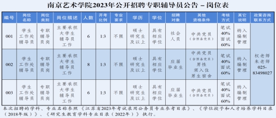 南京艺术学院人事处负责回答此次招聘政策咨询。