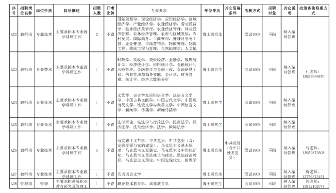 (二)考试时间、地点将通过电话、学院官网公告等方式提前通知应聘人员。应聘人员应按规定的时间和方式参加,否则按弃考处理。