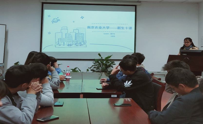 首先,草业181的团务助理董子瑶首先用三个小视频,生动地给新生们介绍了南京农业大学的历史沿革、校园设施及校训,让新生们对学校有了更深的认识和了解。