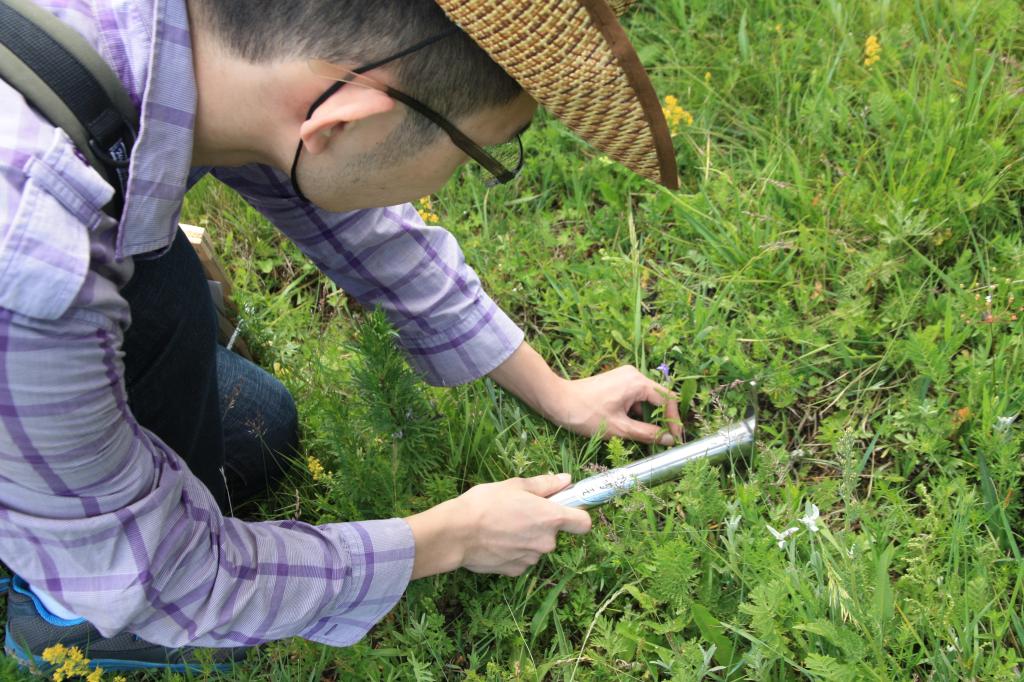 在专业老师的带领下两组成员进行了铲子及标本夹使用的学习,大家的学习能力极强,一次就学会了极为麻烦的标本夹使用及捆绑方法,随后大家自行进行了植物挖取,标签制作,植物记录以及标本压制的工作。边采集边认植物的新颖方式让大家认识了更多的植物,更精准地进行营养鉴定,为之后的牧区技术推广打下了坚实的基础。