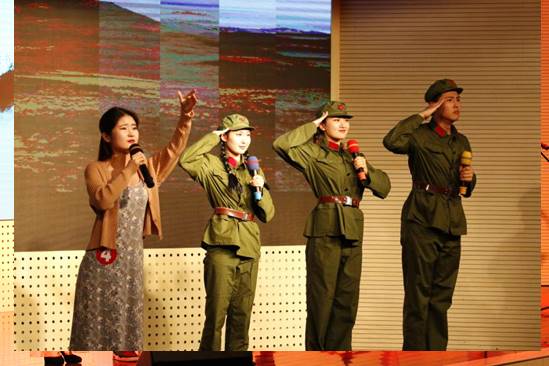接下来的自由朗读更为精彩,《永远的格桑梅朵》赞扬了那些以生命为旗、灵魂为足终生行走的人。第四组的选手们通过新颖的话剧加朗读的形式,将那些为了物资而奉献生命的女兵形象搬上了舞台,不管时代怎样变迁,社会怎样发展,他们就是盛开在雪域高原的格桑梅朵。