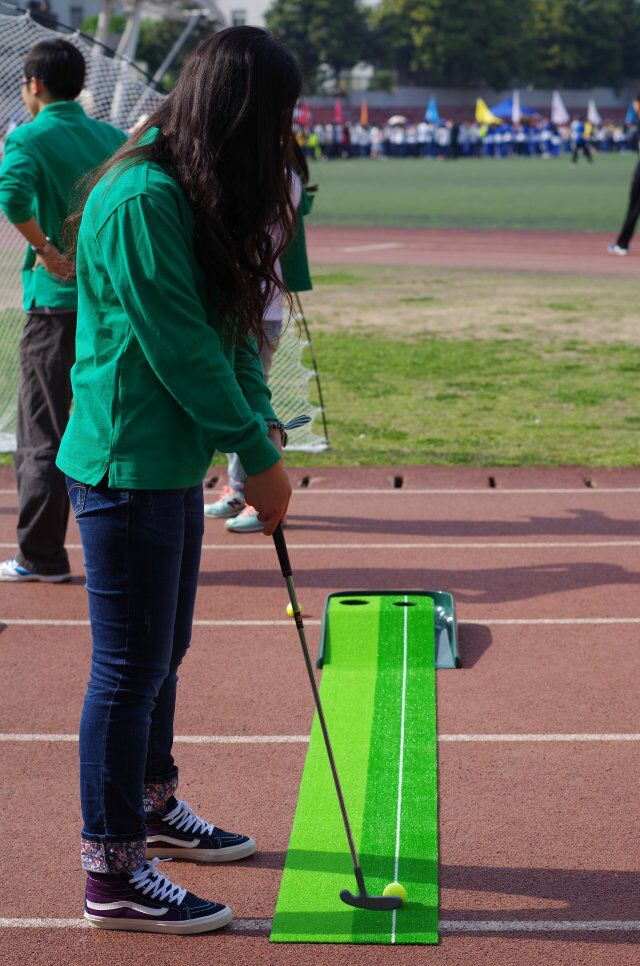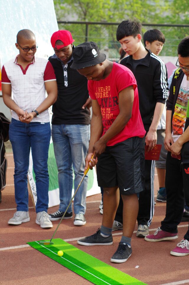 结合自身学科特色开展“模拟高尔夫”引发广大师生的兴趣,纷纷前来体验。