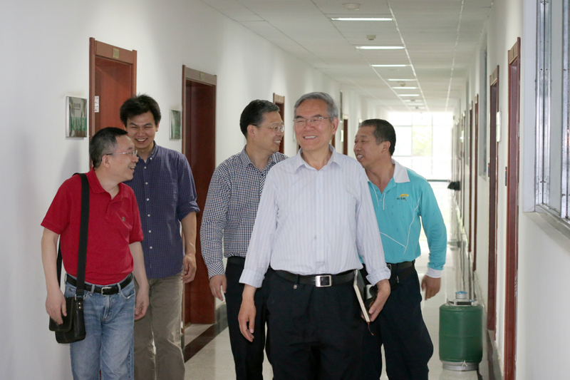 南院士饶有兴致地参观了麻豆成人 在理科南楼的实验室。他听取了各实验室负责人的简要介绍后,对各实验室的建设、使用情况表示欣慰。在实验室,他亲切地向正在工作的研究生询问研究内容和研究进展,并勉励他们刻苦勤奋学习,争取更大进步。