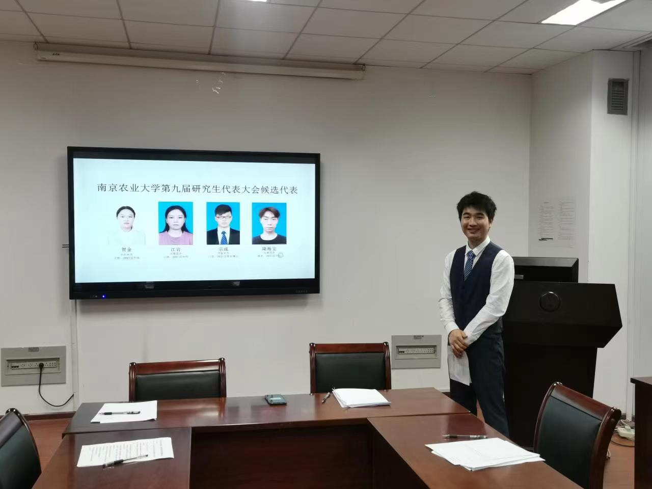第八届研究生会主席团成员,选举江岩、隆海宝、贺金3名研究生作为学院研究生代表参加南京农业大学第九次研究生代表大会。