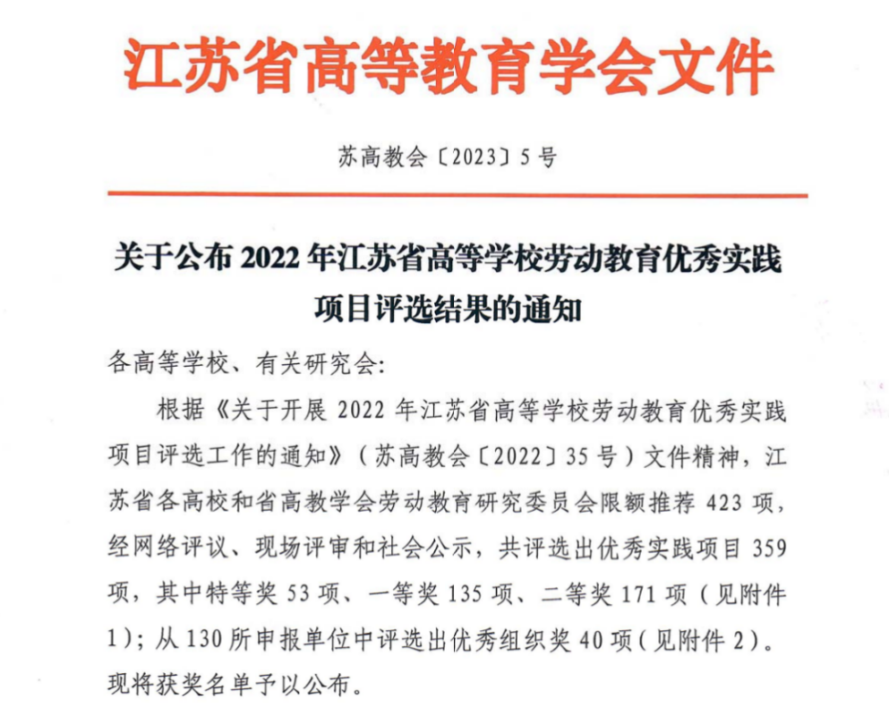 近日,江苏省高等教育学会公布了2022年江苏省高等学校劳动教育优秀实践项目获奖名单,麻豆成人